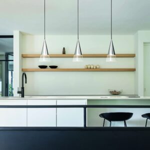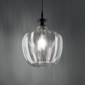 Atmosfera calda e raffinata per ambienti domestici e contract, ideale per valorizzare il soggiorno o la zona pranzo. Rosone, copri portalampade e struttura decorativa interamente in metallo rifinito ottone satinato; cavo in tessuto nero.