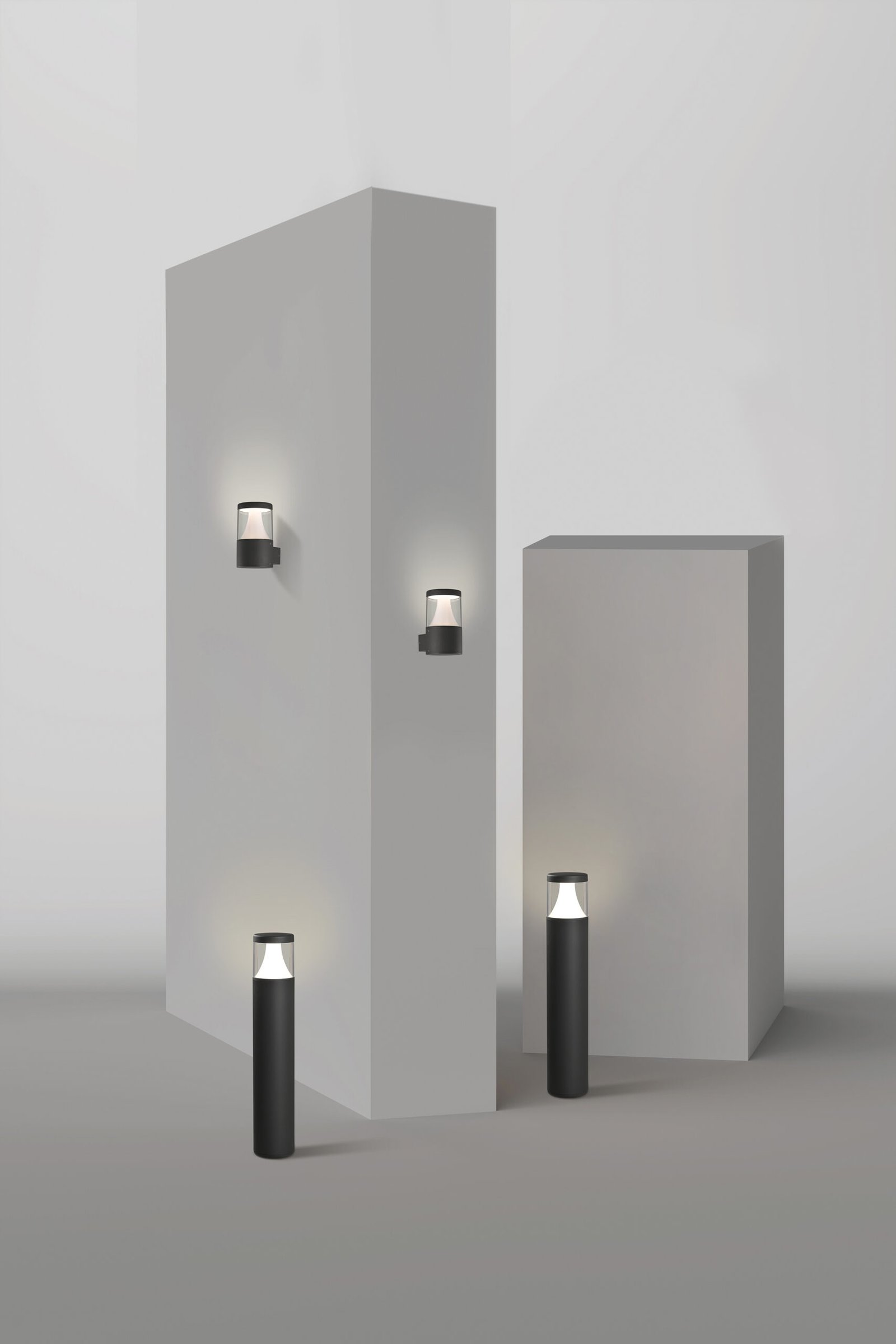 Base e stelo in metallo verniciato a polveri. Diffusore in PMMA bianco. Cavo in neoprene con spina. Finiture: antracite.