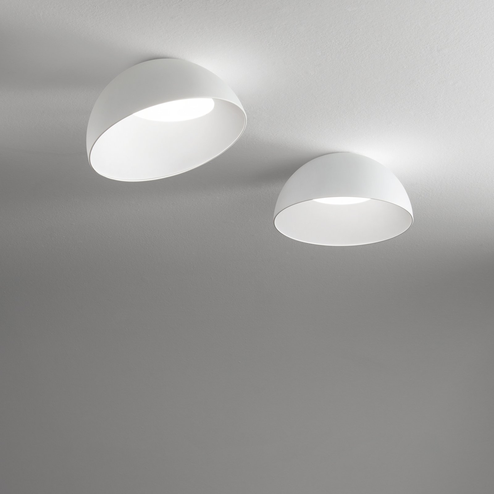 Atmosfera elegante e moderna che trasforma ogni ambiente in un luogo accogliente senza rinunciare a stile e funzionalità. Montatura in metallo verniciato opaco con bracci posizionabili e diffusori in vetro soffiato bianco acidato. Finitura nera.