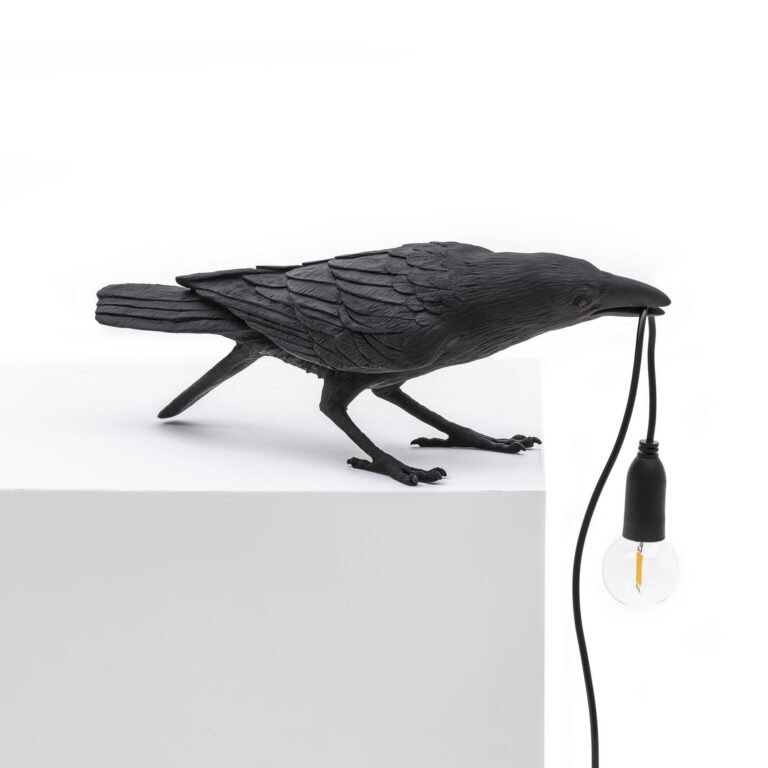 Come in una fiaba, 4 corvi arguti fanno luce perché tu possa trovare la strada. Questi volatili gentili e un po’ eccentrici sono in resina in due varianti colore, disegnati da Marcantonio con 3 pose differenti.