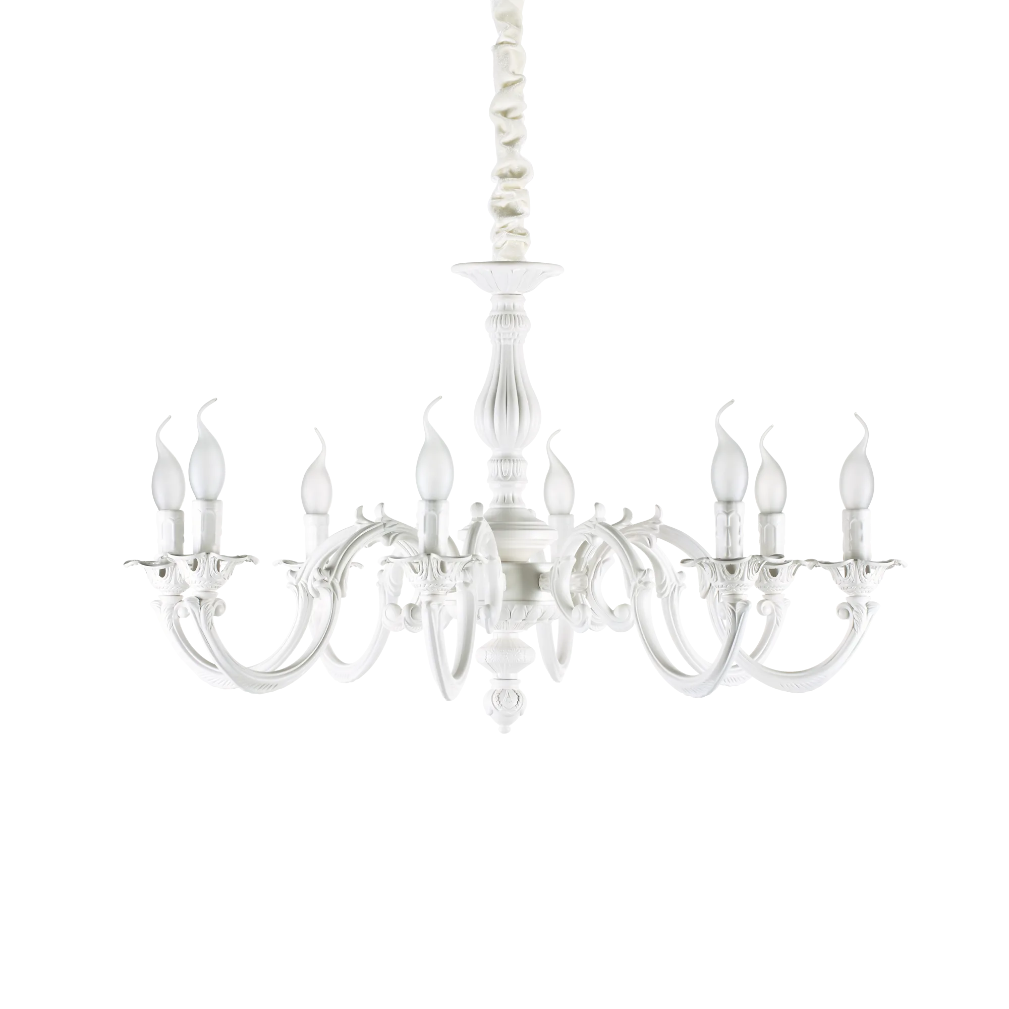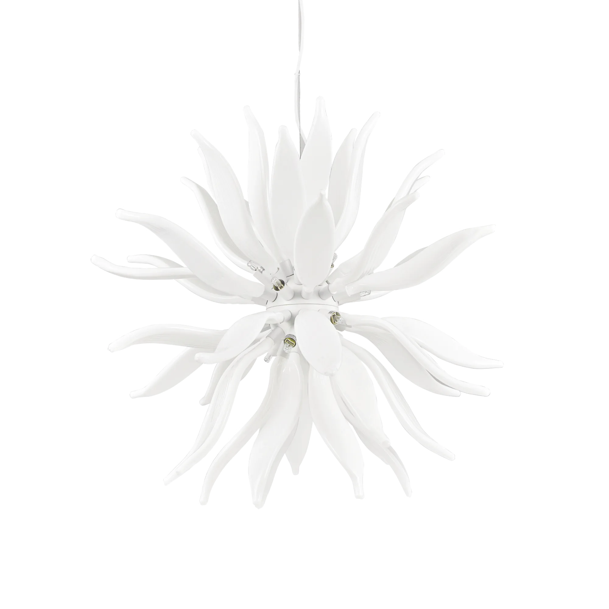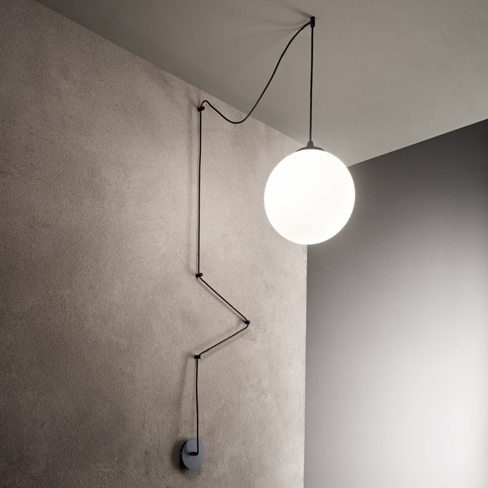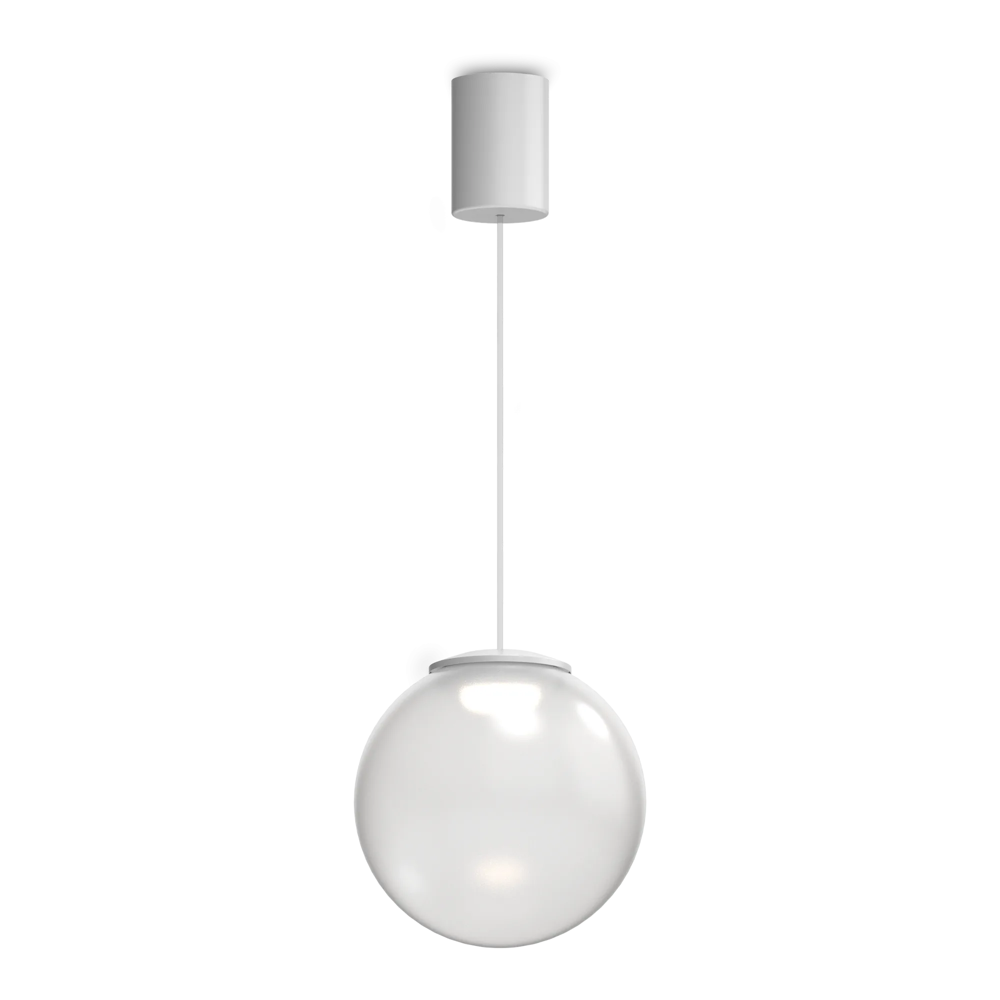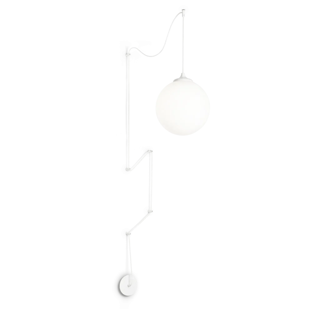 Crea un’atmosfera elegante e avvolgente: diffusore in vetro soffiato bianco acidato che valorizza lo spazio. Montatura in metallo verniciato opaco bianco e cavo in tessuto con supporti per sospensione. Ideale come lampada a sospensione per living.
