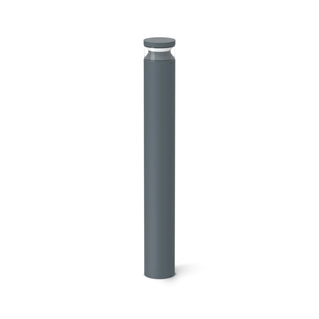 Atmosfera calda e contemporanea per gli esterni con luce diretta verso il basso. Corpo in alluminio pressofuso verniciato a polveri, diffusore con protezione esterna in policarbonato trasparente fumé e interno in acrilico opale satinato. Antracite.