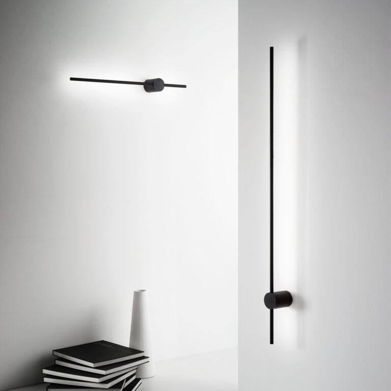 Luce soffusa e avvolgente che valorizza con eleganza ogni ambiente, creando un effetto raffinato e discreto. Base e corpo in alluminio verniciato a polveri, diffusore in acrilico opale ed emissione di luce indiretta, finitura nera.
