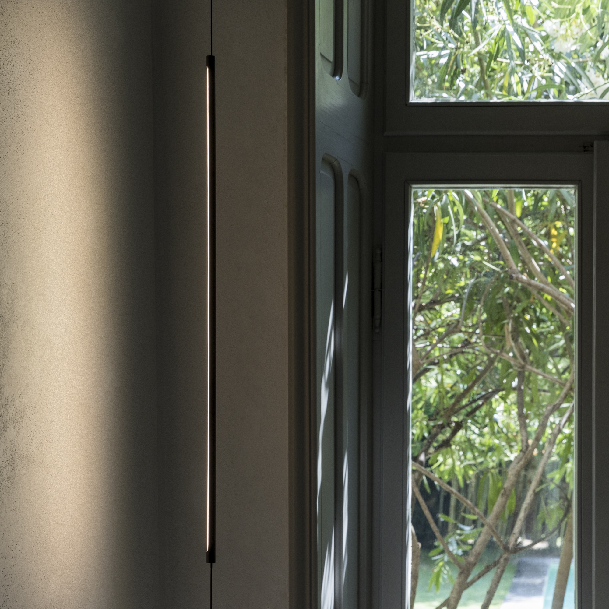 Una luce calda e avvolgente che crea atmosfere intime e accoglienti. Corpo in metallo verniciato a polveri con finitura bianca, diffusore in PC opale satinato, cavo di sostegno in PVC nero e alimentazione con spina ideale come lampada da parete.