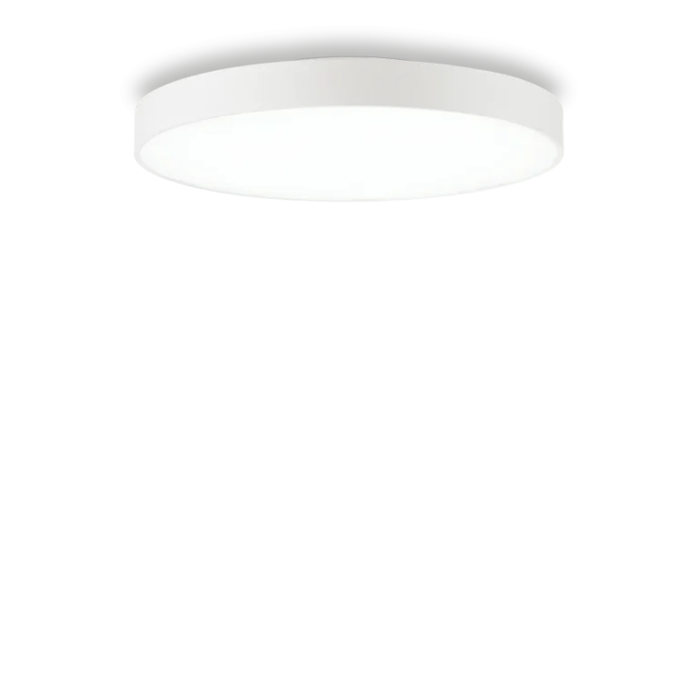 Lampada a plafone con base circolare e corpo luce in alluminio verniciato a polveri. Diffusore OPALE in policarbonato. Disponibile in tre diversi diametri di colore bianco.