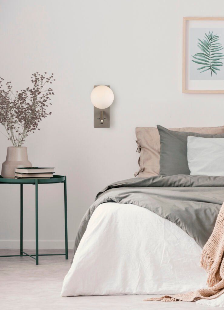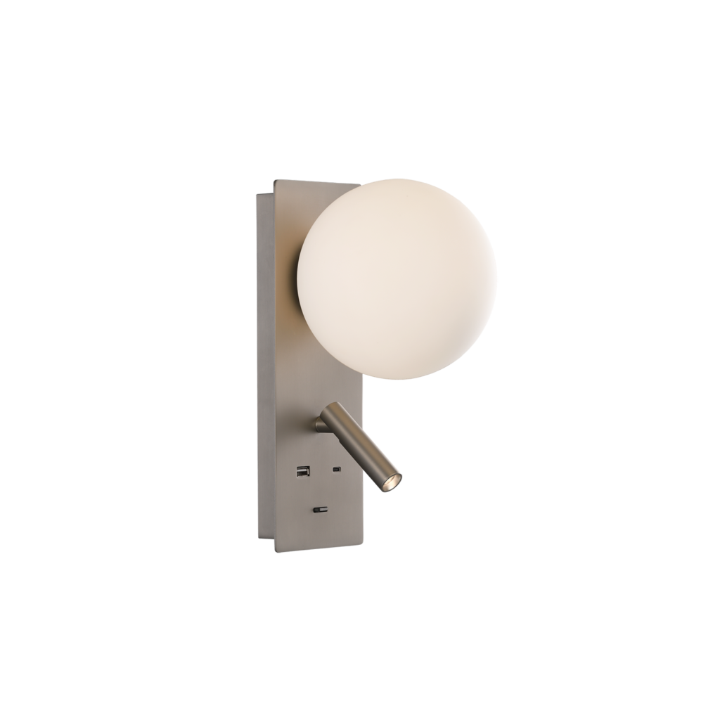 Materiali: Aluminium/Glass/Iron/PMMA Finitura: Nickel Mat/Opal Kin Wall Lamp 16/8169 Nickel Mat/Opal, LED 8W 2700K 370lm + 3W 2700K 285lm, CRI90 CL.I, Integrated LED, With USB, USB-C, Adjustable