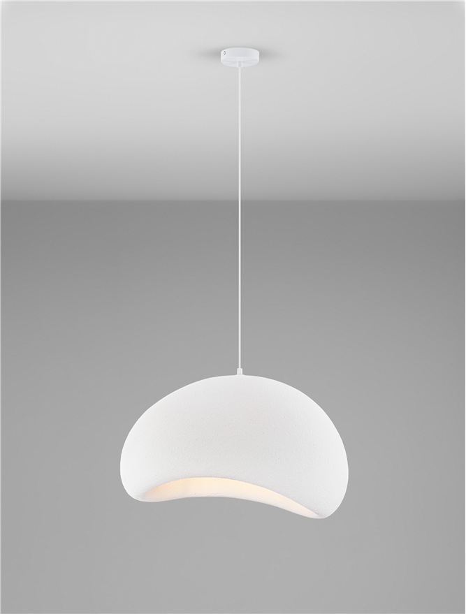 Atmosfera raffinata e avvolgente, il colore Sandy White diffonde una luce morbida che valorizza ogni ambiente. Realizzata in poliuretano e resina, questa lampada a sospensione di Nova Luce abbina estetica pulita e materiali di qualità.