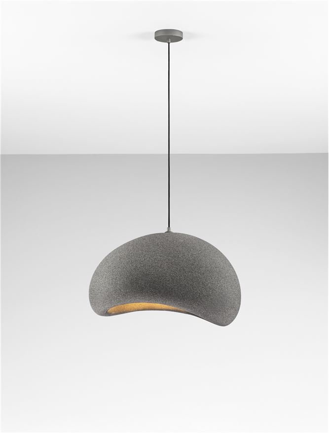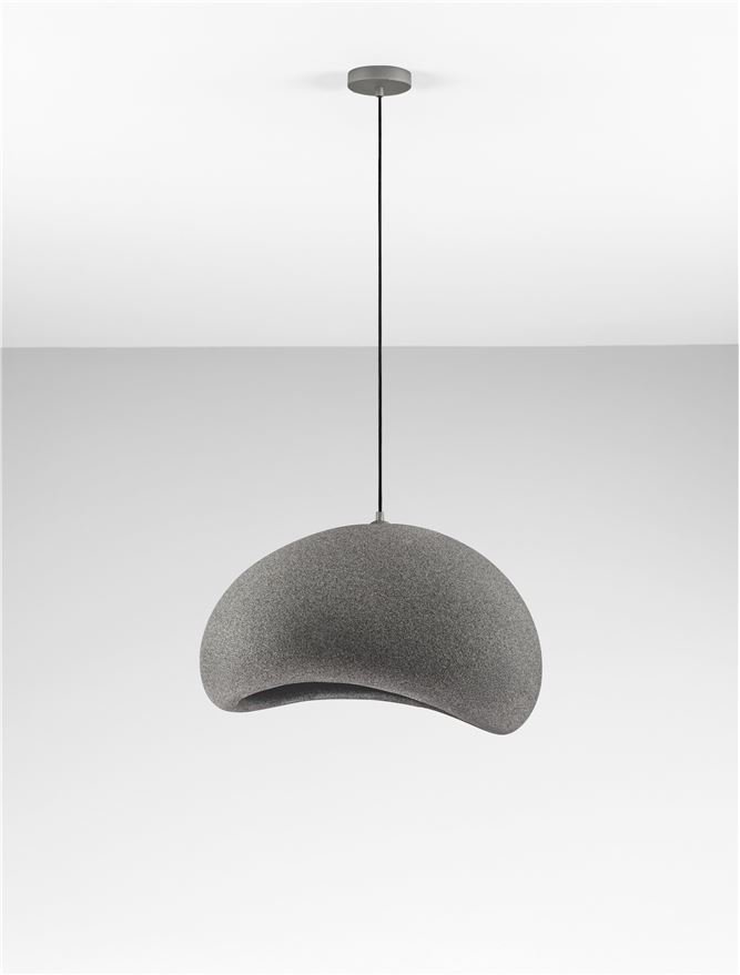 Atmosfera moderna e avvolgente che trasforma la stanza in un luogo elegante e accogliente, valorizzando ogni dettaglio con una luce scenica. Lampada a sospensione in poliuretano e resina con finitura Stone Gray firmata Nova Luce per ambienti moderni.