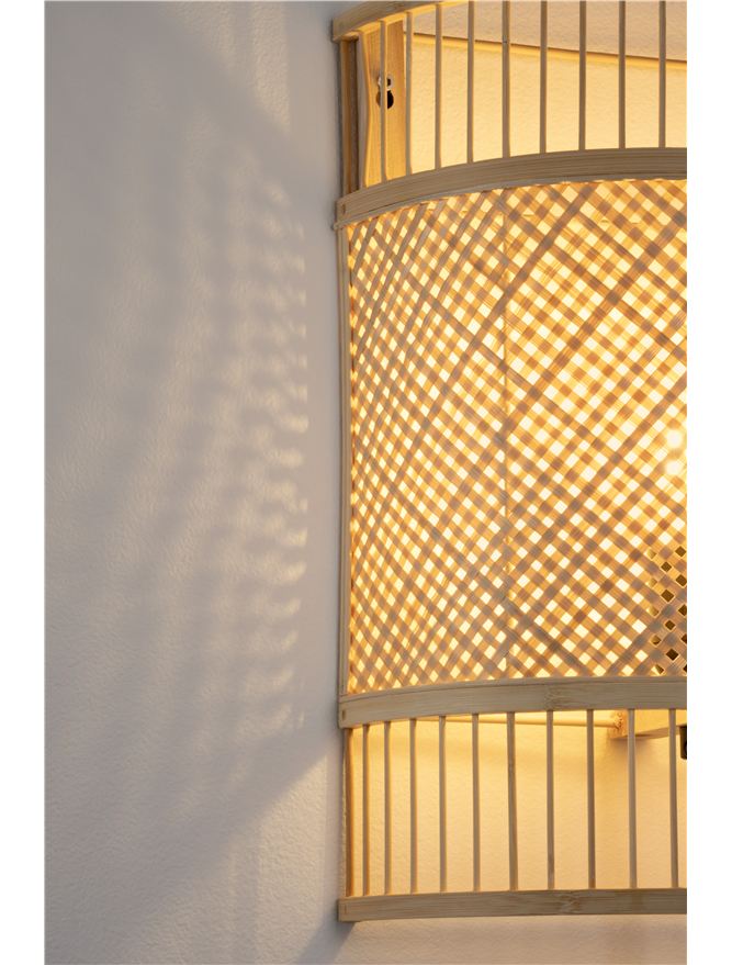 Calda e avvolgente, crea un’atmosfera intima che valorizza la parete come fulcro dell’ambiente. Realizzata in bamboo naturale, presenta un’estetica organica firmata Nova Luce, perfetta per chi cerca eleganza discreta e materiali autentici.