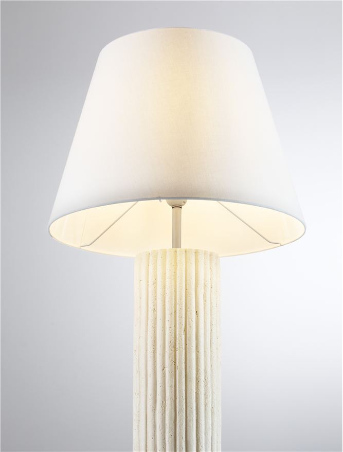 Crea un’atmosfera intima e raffinata grazie a una lampada bianca che valorizza ogni ambiente; elegante e discreta, esalta gli spazi con luce morbida. Corpo in fusione di pietra a conchiglia e paralume in tessuto. Brand Nova Luce lampada da terra.