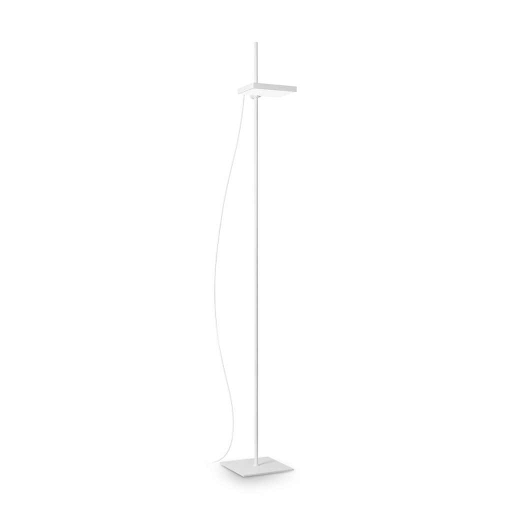 Una luce raffinata che trasforma l’ambiente in uno spazio accogliente e funzionale. Montatura in metallo verniciato opaco bianca, diffusore orientabile e regolabile in altezza in policarbonato opale, cavo in pvc con driver e interruttore da terra.