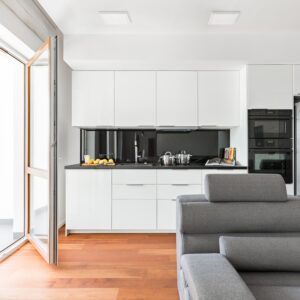 Diffusore composto da due lastre di vetro: sotto con bordo a specchio e smerigliato al centro, sopra con decorazione serigrafata e applicazioni di bottoni in vetro.