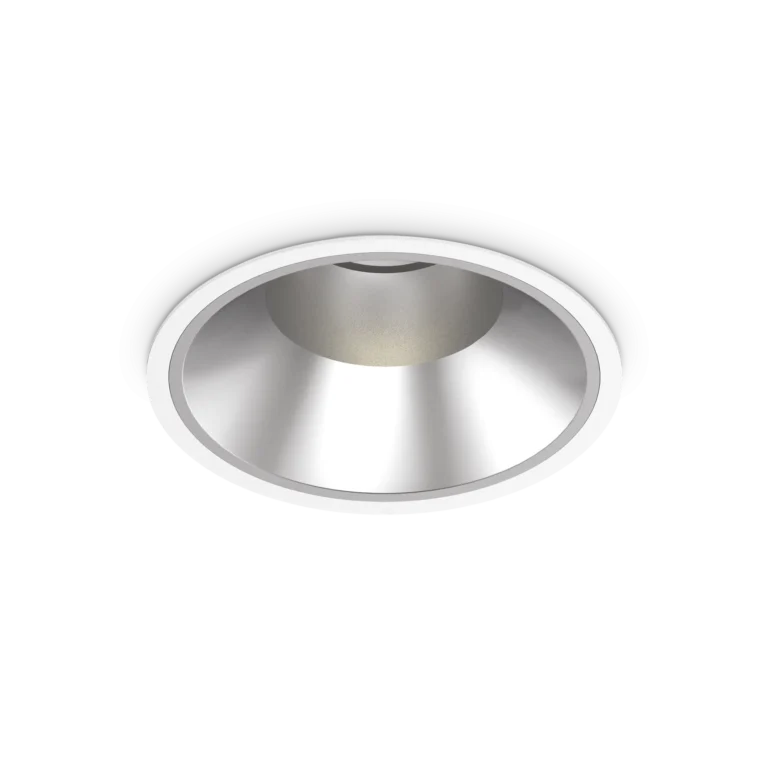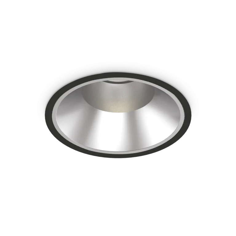 Incasso fisso in alluminio pressofuso con ghiera rotonda in tre dimensioni, adatto per installazione su soffitti in cartongesso. Finitura nera opaca RAL 9005 e bianca opaca RAL 9016, protezione frontale IP54 (a prodotto installato).