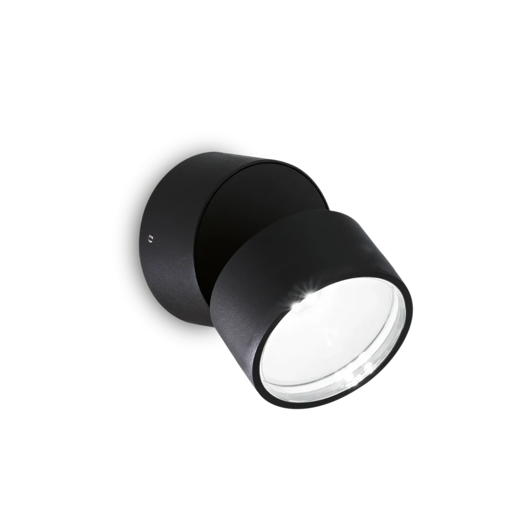 Corpo luce in alluminio verniciato a polveri. Diffusore inclinabile con schermo in vetro. Disponibile nelle finiture antracite, bianco, coffee o nero.
