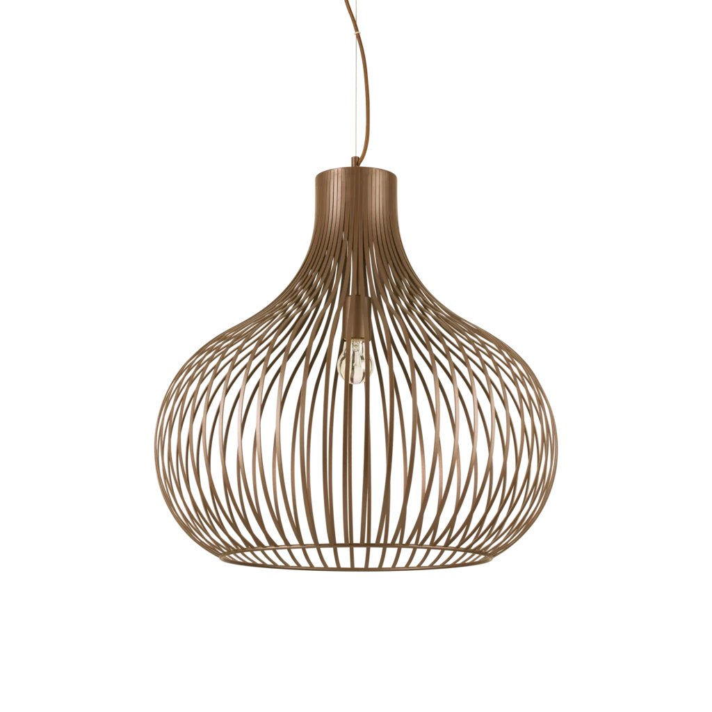 Struttura in metallo con finitura in vernice marrone ad effetto metallico. Cavo in tessuto.