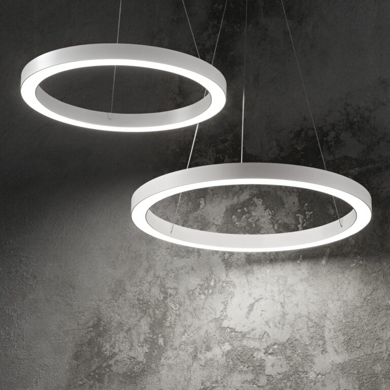 Rosone e corpo luce in alluminio verniciato a polveri di colore bianco o nero. Diffusore in materiale plastico color OPALE. Sorgente luminosa a led integrati.