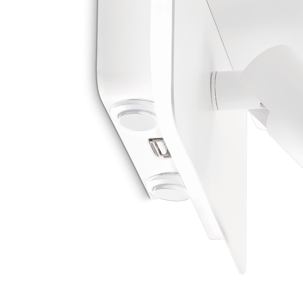 Montatura interamente in alluminio verniciato a polveri. Diffusore in policarbonato OPALE con emissione sul retro. Proiettore frontale orientabile. Colore: bianco o nero.