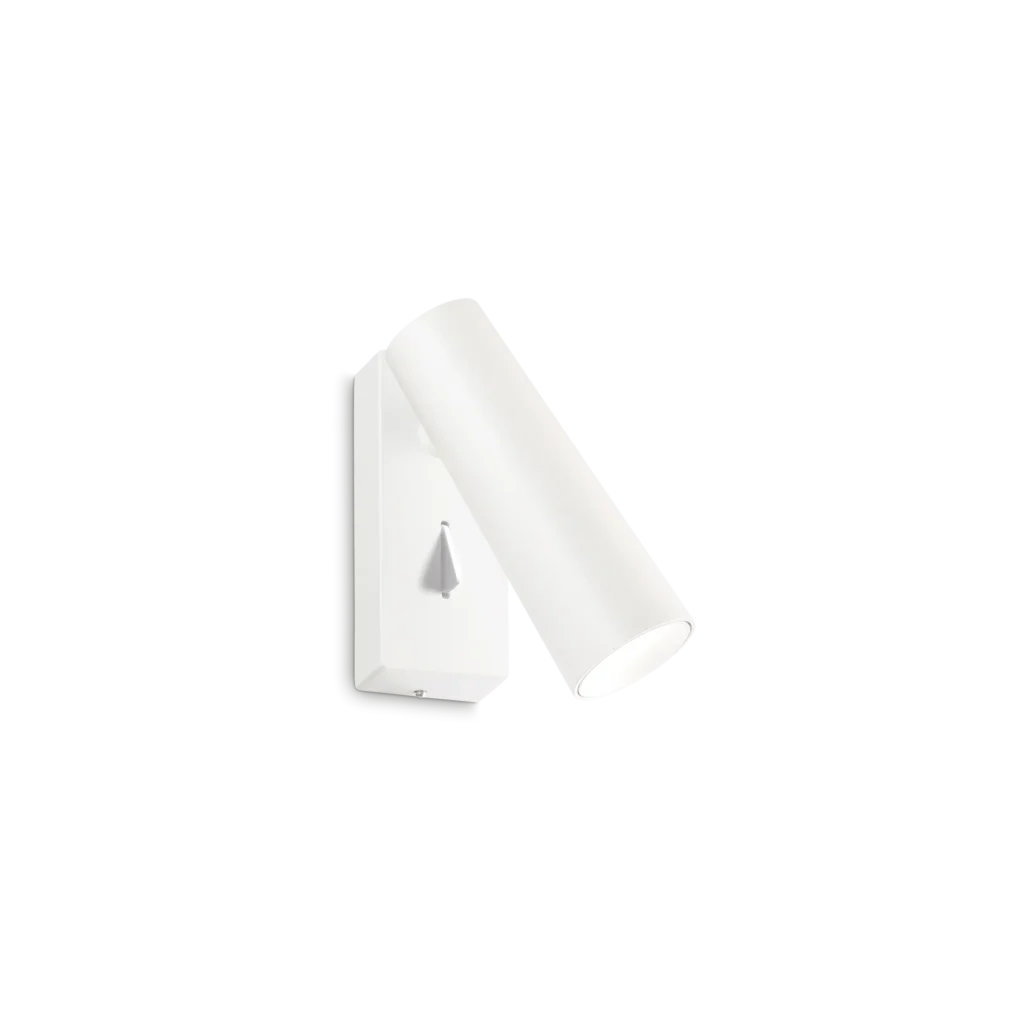 Corpo luce in alluminio verniciato a polveri. Diffusore orientabile con schermo acrilico zigrinato, fissato con ghiera. Interruttore incorporato. Colori: bianco o nero.