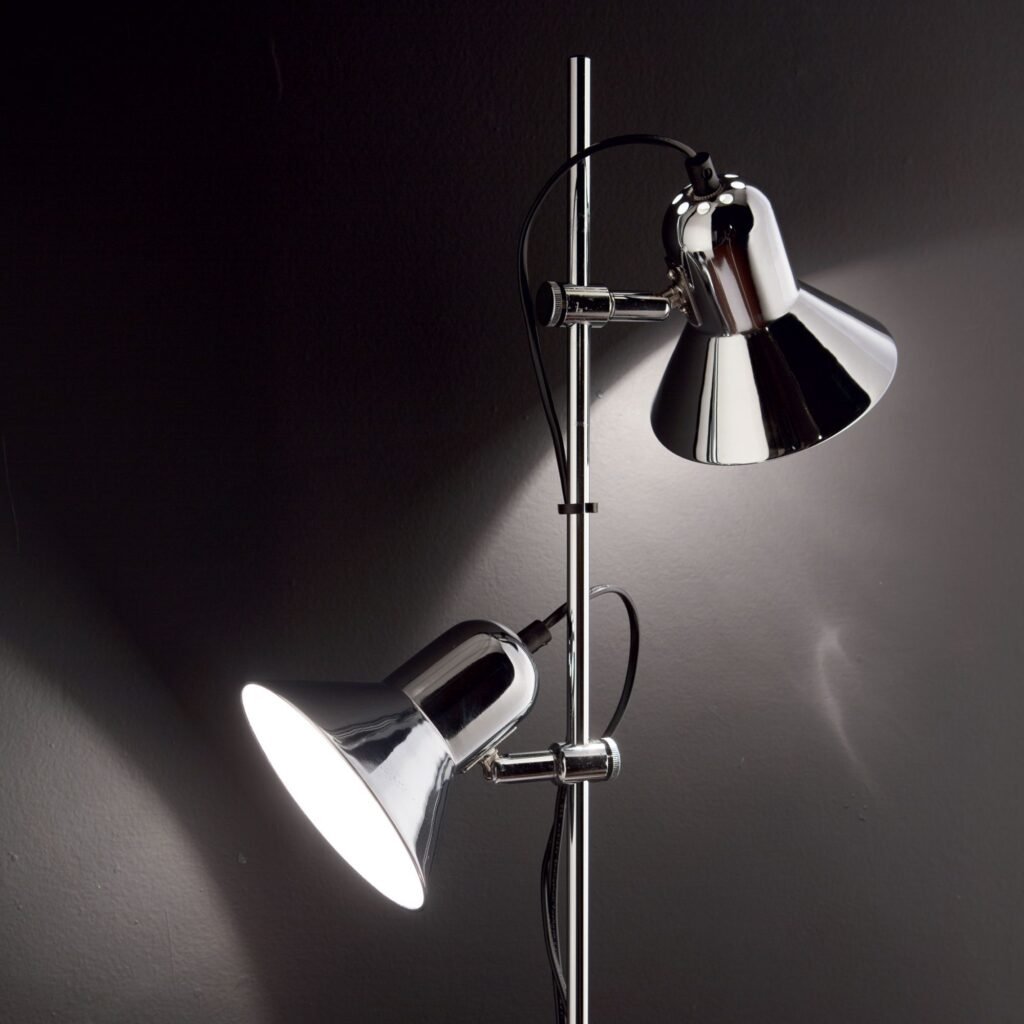 Diffusori e base in metallo cromato, argento o smaltato nero. Dettagli e raccordi in metallo cromato. Diffusori orientabili.