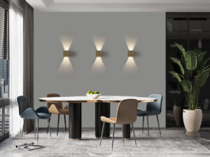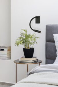 Corpo luce interamente in metallo con varie finiture. L’assenza di diffusore consente di montare una vasta gamma di lampade con attacco E14.