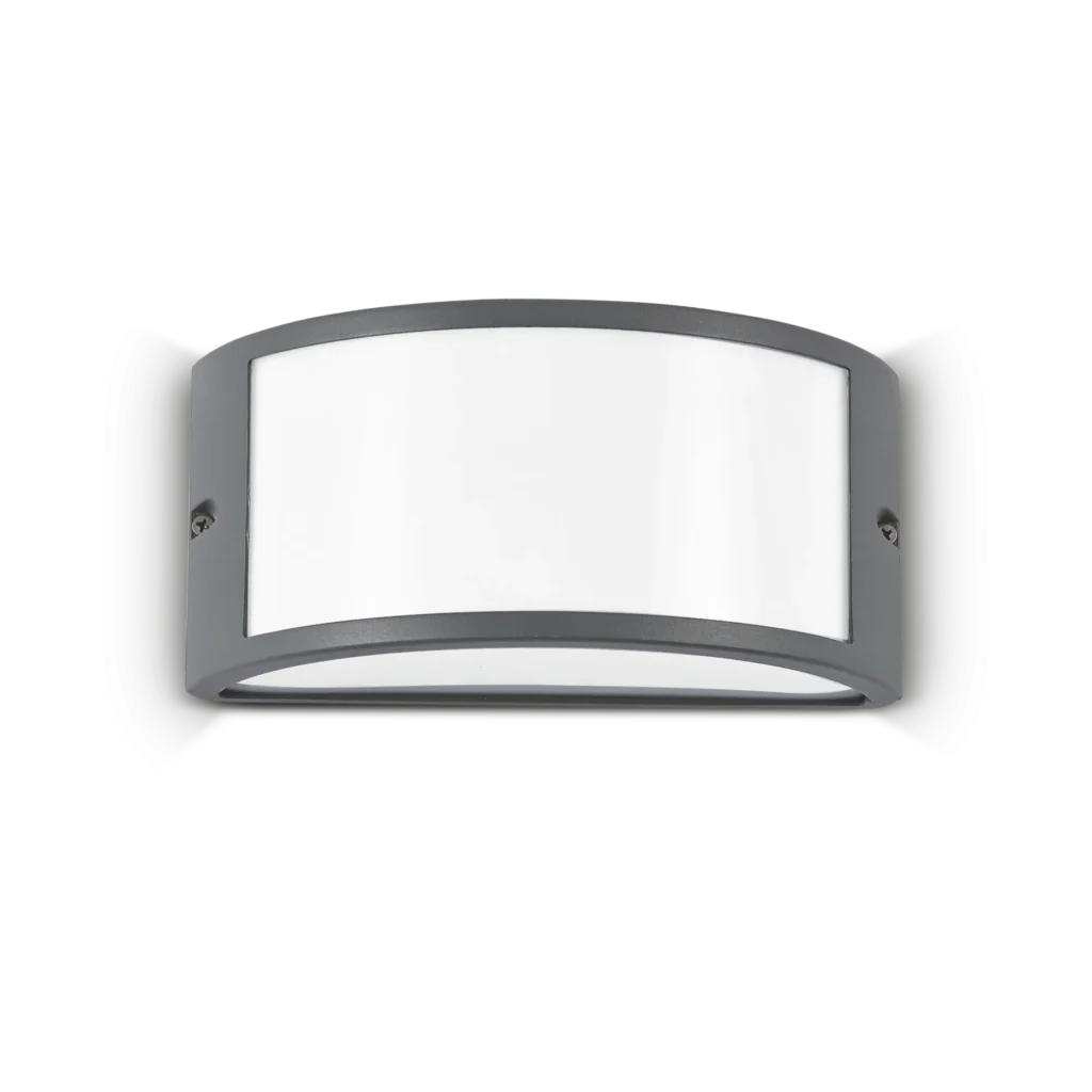 Ambiente esterno valorizzato da una luce elegante e discreta, perfetta per creare atmosfera su muri e vialetti. Corpo in alluminio pressofuso verniciato a polveri antracite con diffusore bianco in acrilico, ideale come lampada da parete esterna.