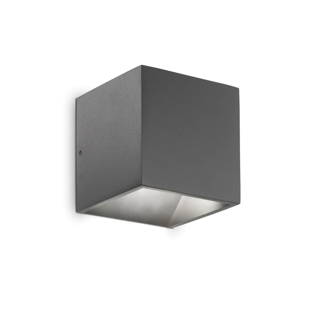 Corpo luce in fusione di alluminio verniciato a polveri. Struttura interna che riflette il fascio luminoso sia sopra sia sotto. Disponibile nelle finiture antracite, bianco, coffee, grigio o nero.
