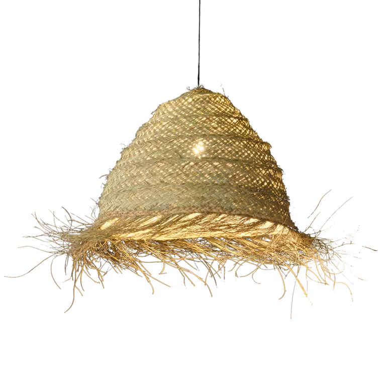Atmosfera calda e accogliente che trasforma ogni ambiente in un rifugio di comfort, la luce diffusa valorizza arredi e crea suggestioni intime. Sospensione in raffia naturale dal design contemporaneo ideale per soggiorni, camere e spazi living.
