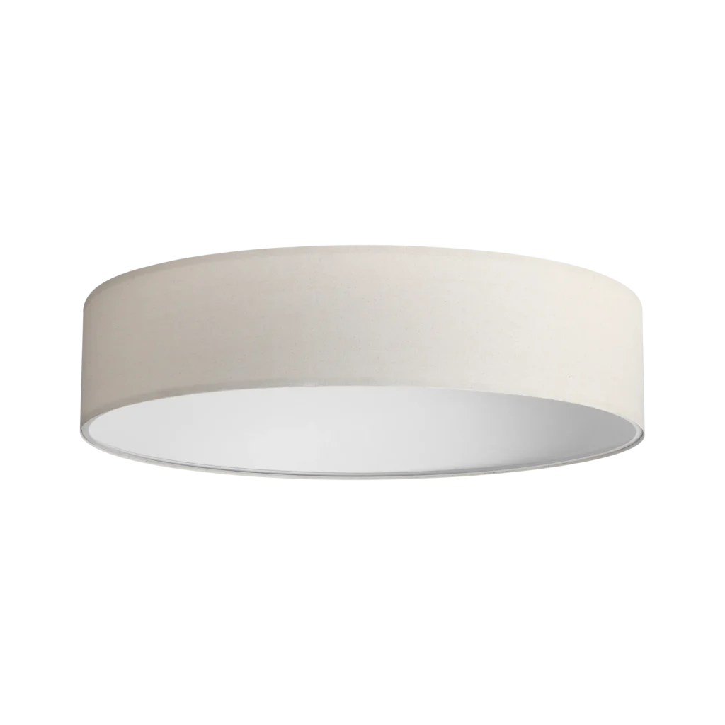 Montature in metallo verniciato a polveri o placcato. Paralumi in pvc ignifugo rivestito di tessuto. Colori montature: bianco, nero oppure nickel satinato o ottone spazzolato. Colori paralumi: beige, tortora, bianco, nero o legno.