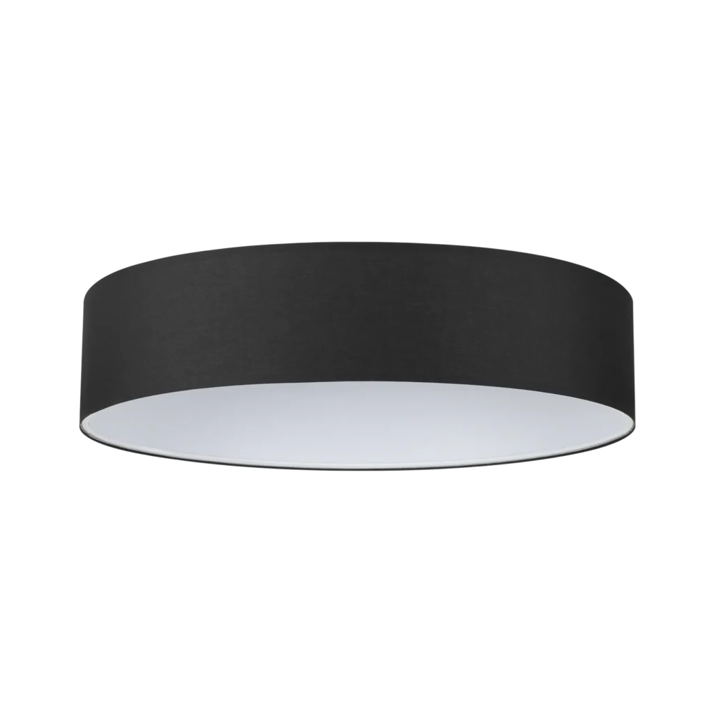Stile essenziale e sofisticato per un’atmosfera elegante e moderna, ideale per arricchire ogni ambiente con discreta personalità. Montatura in metallo verniciato a polveri nero, paralume in PVC ignifugo rivestito in tessuto.