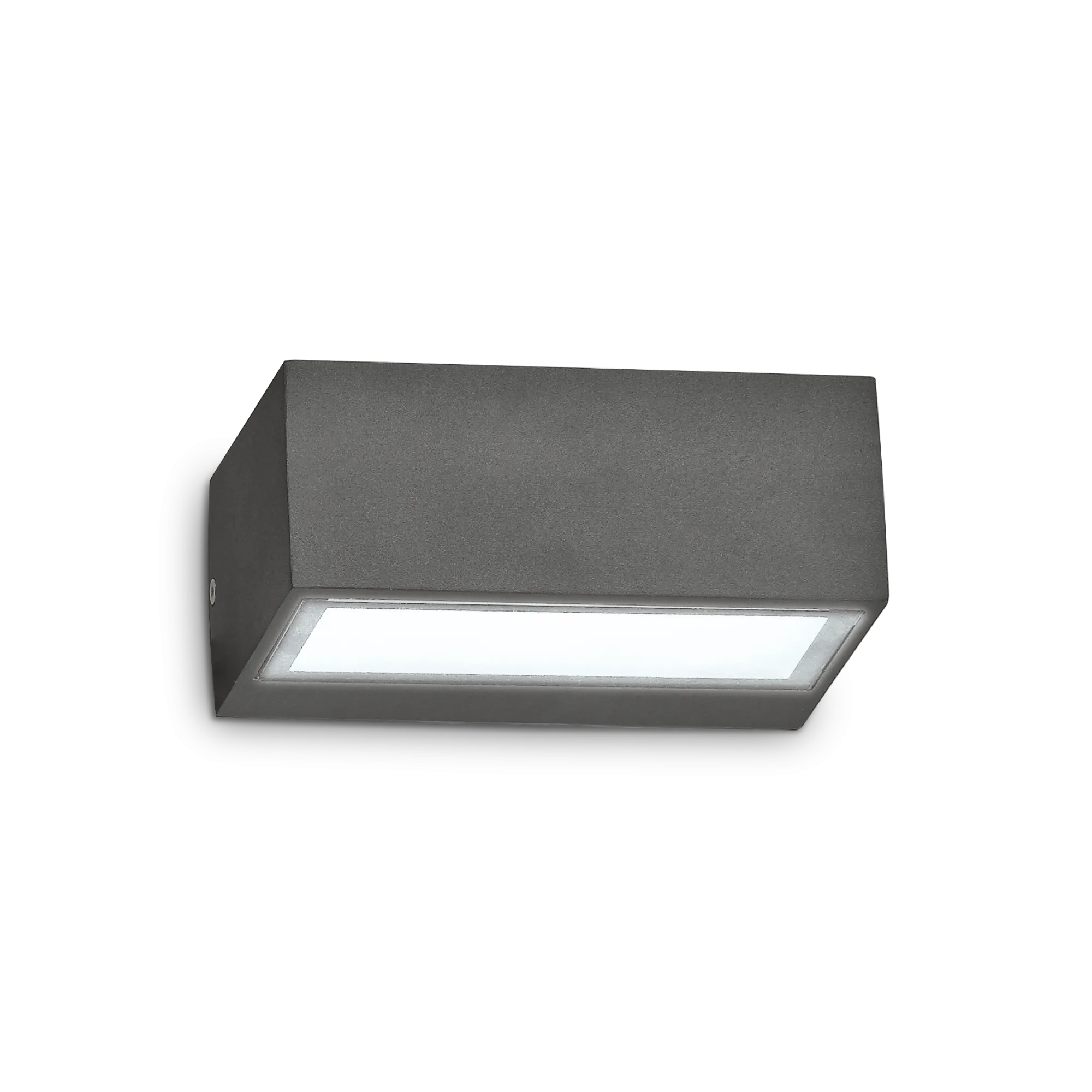 Corpo luce in alluminio pressofuso verniciato. Doppio diffusore, superiore e inferiore, in vetro pirex trasparente. Disponibile nelle finiture antracite, bianco, grigio o nero.
