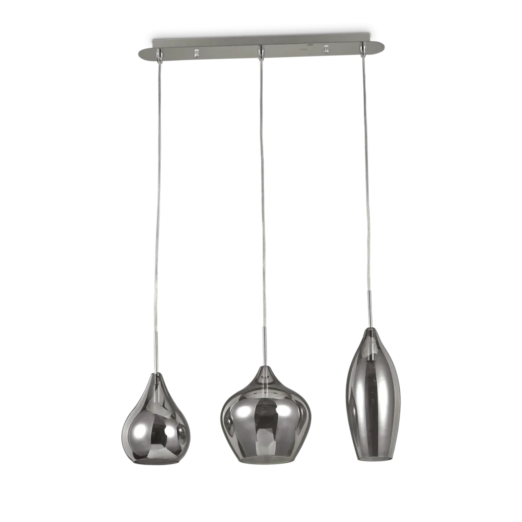 Montatura in metallo con finiture bianco e cromo. Diffusori in vetro soffiato bianco o fume’.