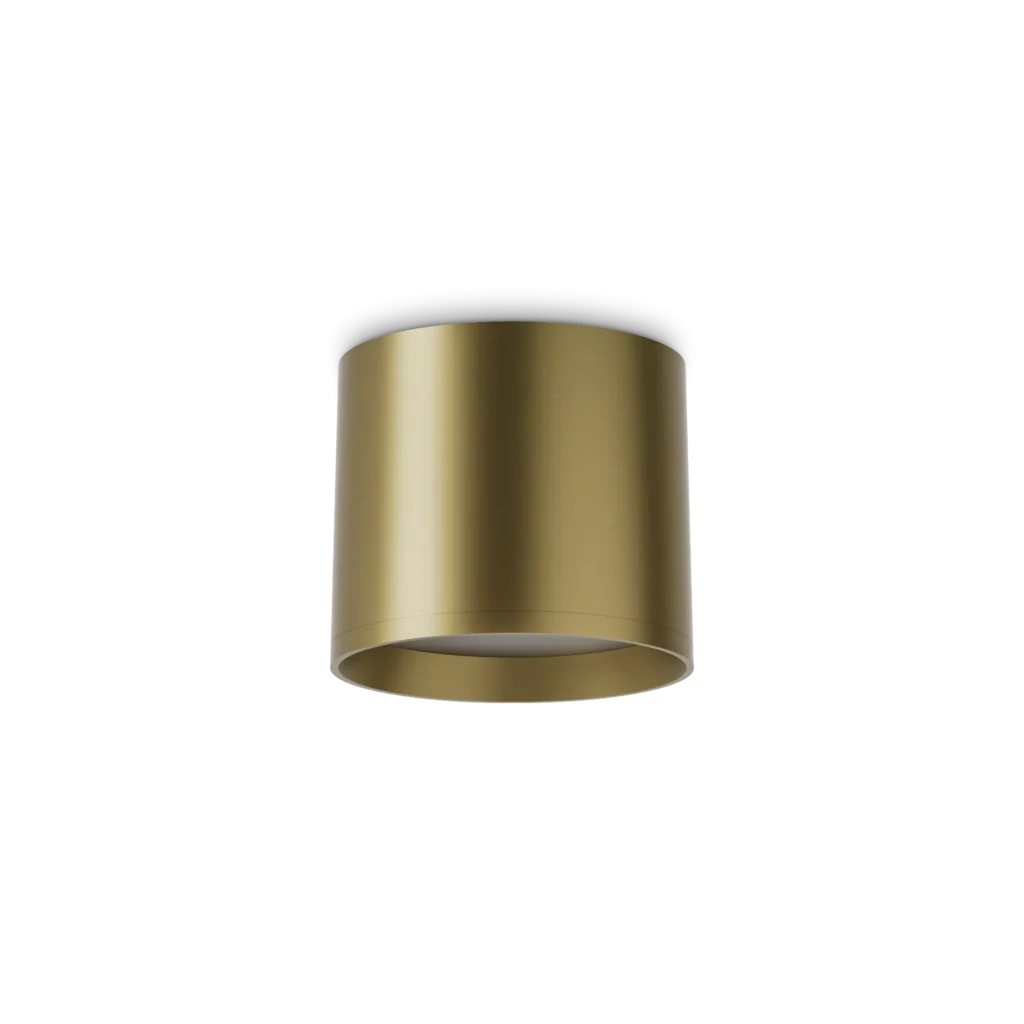 Atmosfera calda e sofisticata che valorizza ogni ambiente con eleganza discreta. Lampada da soffitto in ottone, corpo in alluminio verniciato o placcato; disponibile con sorgente GX53 o led integrato e diffusore in policarbonato opale satinato.