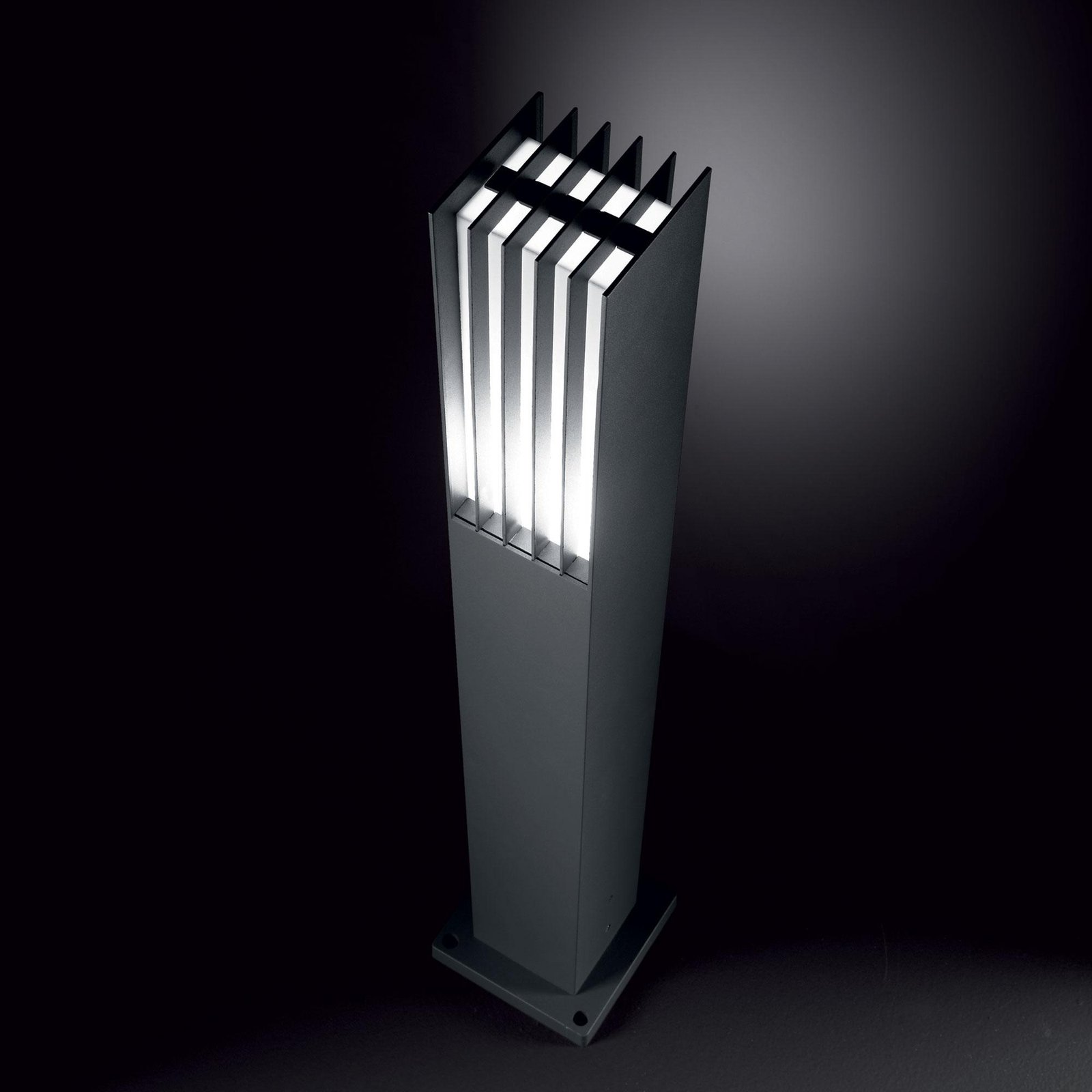 Corpo luce in alluminio verniciato a polveri. Diffusore in materiale plastico OPALE. Sorgente luminosa a led integrato. Disponibile nelle finiture antracite, bianco, coffee, grigio o nero.
