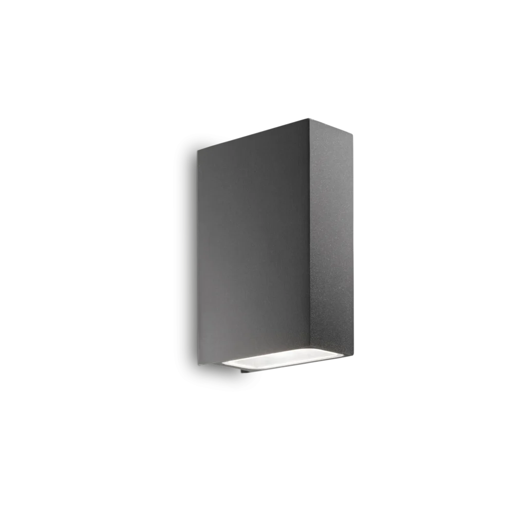 Corpo luce in alluminio rifinito con vernice opaca a polveri di colore antracite o bianco. Diffusore in vetro temperato trasparente. Emissione luce sopra e sotto.