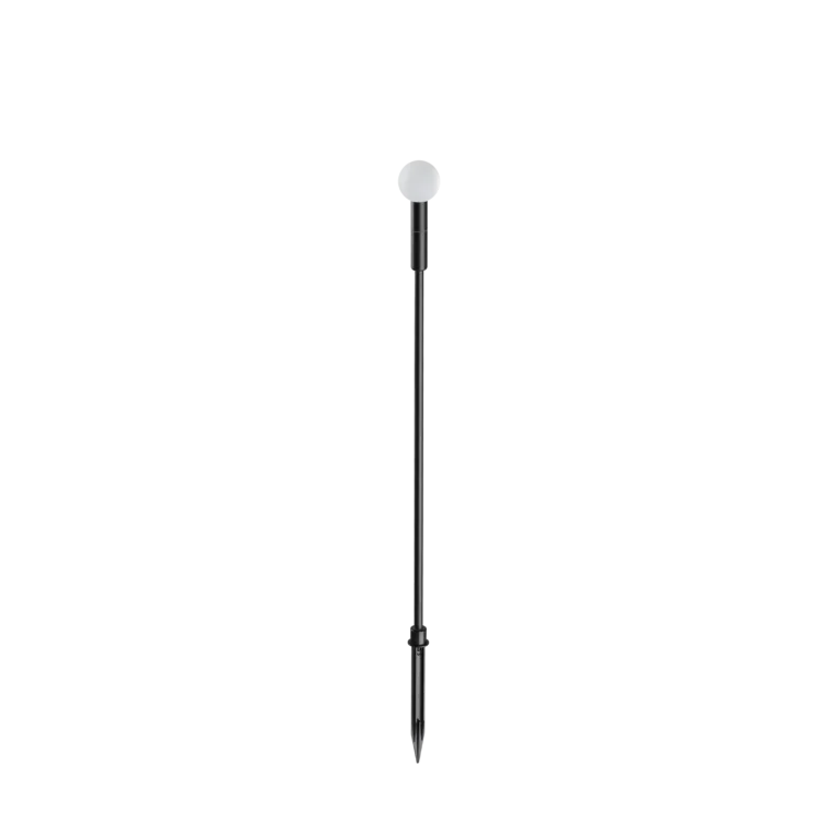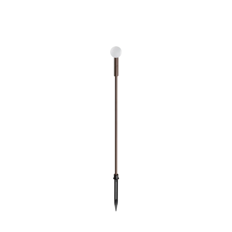 Montatura in alluminio verniciato a polveri. Diffusore in acrilico satinato. Fornito con picchetto. Colori: nero e coffee.