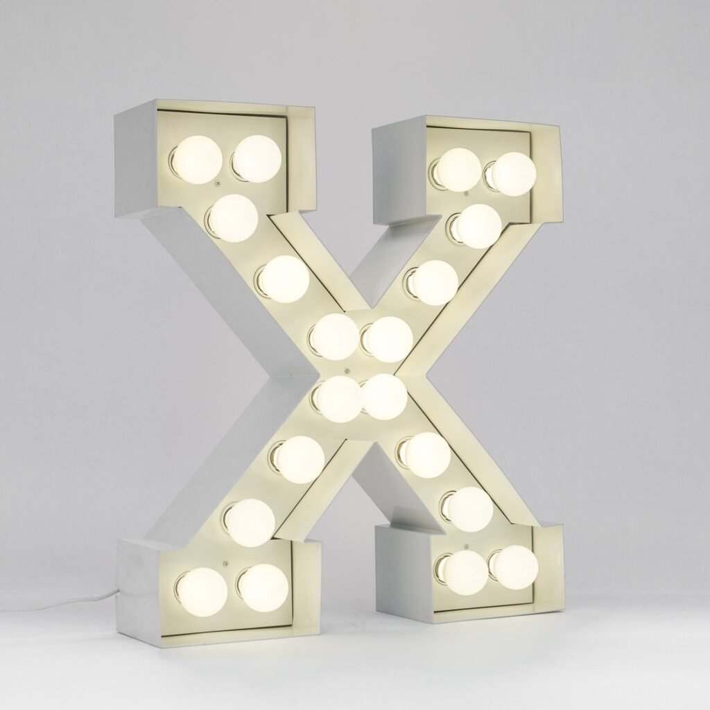 Un’insegna teatrale per messaggi luminosi da divi del cinema. Vegaz, grandi lettere in metallo con lampadine in sequenza, è lo strumento perfetto per comunicare pensieri e parole con un posto importante nella vita..