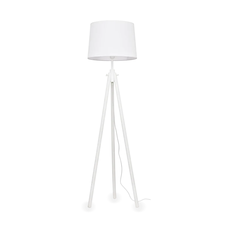 Base in legno naturale con dettagli in metallo. Paralume in lamina di pvc rivestito in tessuto. Cavo esterno in tessuto. Disponibile anche con montatura e paralume bianchi o neri.